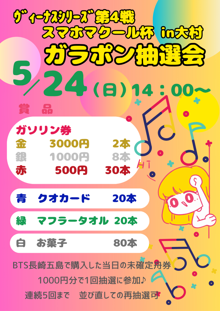 ヴィーナスシリーズ第4戦スマホマクール杯大村開催記念ガラポン抽選会