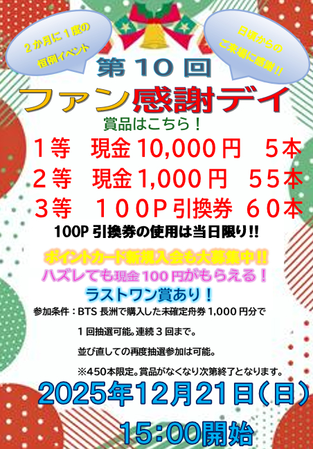 【12月21日(日)】第10回ファン感謝デイ ガラポン抽選会