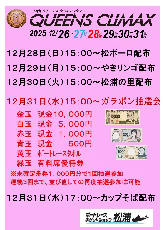 12月31日は現金ガラポン抽選会もございますので