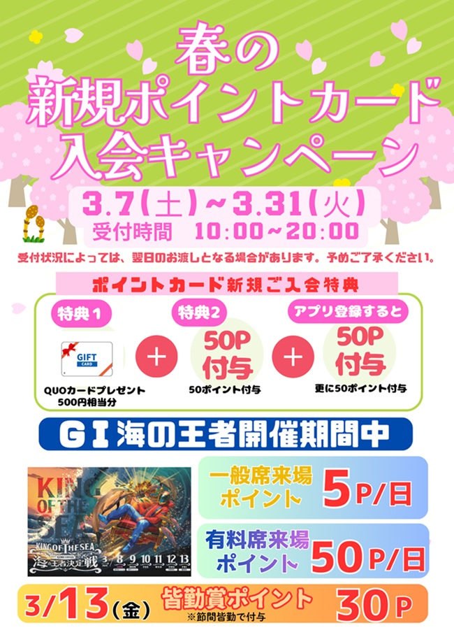 3/7~3/31 春のポイントカード新規入会キャンペーン